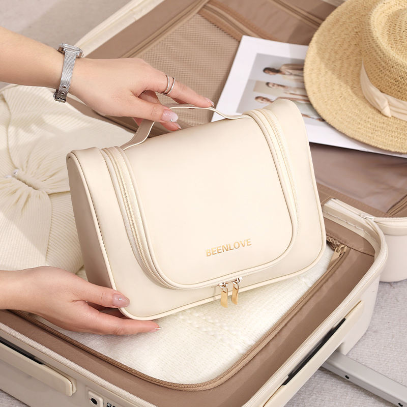 | *Product name | Textured PU Leather Cosmetic Bag,Foldable Hanging Toiletry Bag for Business Trip |